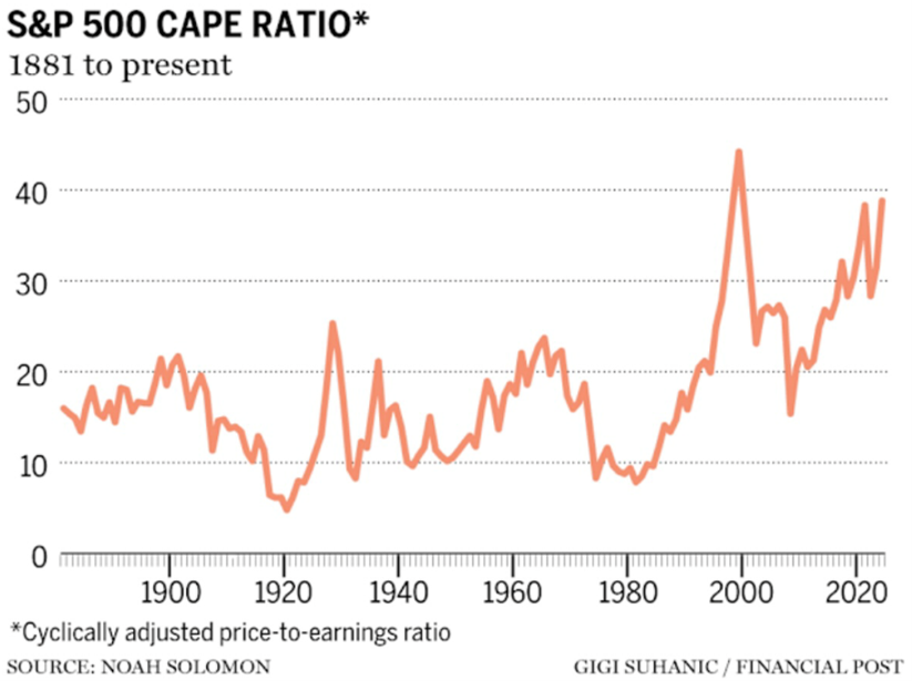 While inflation has been held in check most recently, there are still concerns over the longer-term inflationary pressures we may experience due to tariffs, most of which will play out over the next 12-18 months. New tax cuts should help boost GDP due to greater consumer spending in the first quarter, and there is hope that this along with other growth initiatives from the current administration will invite a new “Golden Era” for the US economy. While the optimism is encouraging, we need to keep in mind that these initiatives are coming into play amid frothy equity markets and tech/AI investing that is pushing valuations and overall market share to levels that question the sustainability of those valuations.